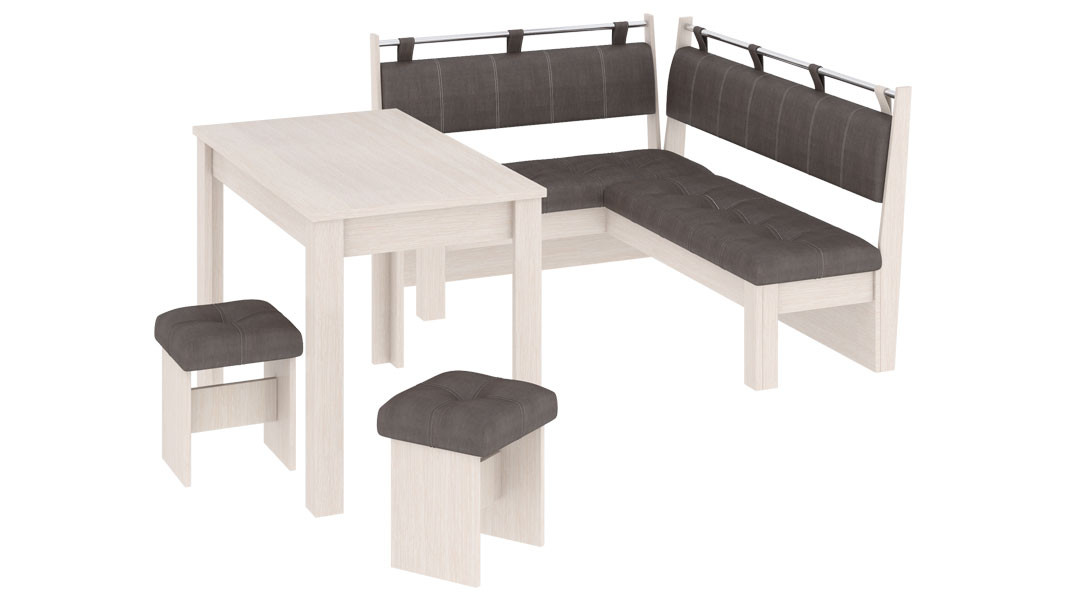• Обеденная зона "Омега" состоит из удобной угловой скамьи, практичного стола и компактных табуретов.